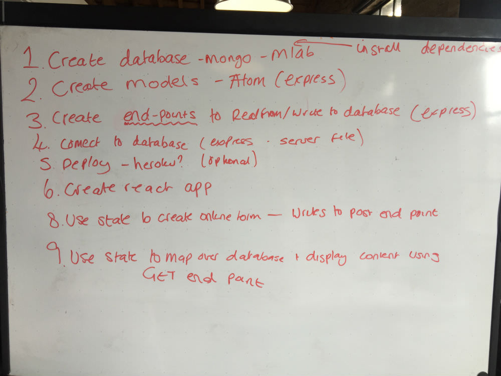 After afternoon of pairing, the front end (REACT) was also starting to come together. Able to build a form to post to the database, and a home page which lists users from database. These crucial steps gave us a new found confidence and eased some of the earlier week stresses.